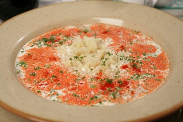 Описание: 250 г брынзы1 луковица50 г жира4 картофелины1 ч. л. молотой красной паприки½ ч. л. тминамолотый черный перецсметана, свежий зеленый лук Лук нарезать кубиками, обжарить на жире до золотистого цвета.Добавить тмин, молотую красную паприку, брынзу и картофель, нарезанный кубиками.Перемешать и залить приблизительно 1 л горячей воды.Варить до готовности картофеля.Приправить солью, молотым черным перцем.Суп перемешать блендером, можно добавить сметану, посыпать нарезанным зеленым луком.Подавать с галушками или хлебом, порезанным кубиками и обжаренным на жире.