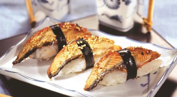 Описание: 1 ч. л. васаби50 мл белого сухого вина0,5 пластины нори1 ст. л. семян кунжутасахар – 1 стакан400 г приготовленного риса150 мл соевого соуса1 копченый угорь весом 500 гРыбу положите на разделочную доску, сделайте надрез вдоль хребта и снимите кожу. Аккуратно отделите филе от хребтовой кости, выньте оставшиеся реберные косточки. В сотейнике смешайте соевый соус, вино и сахар. Добавьте кожу и кости угря. Поставьте на средний огонь и варите соус, пока он не загустеет, 30 мин.Процедите соус через мелкое сито.Нори разрежьте на полоски шириной 1 см. Кунжутные семечки обжарьте на сухой сковороде, 3 мин.Разрежьте филе угря на 10 кусочков шириной примерно 2,5–3 см. Положите на рис по 1 куску угря, слегка прижмите пальцами, оберните полоской нори.С помощью кулинарной кисточки смажьте угря приготовленным соусом.Присыпьте каждый нигири-суши кунжутом.КСТАТИТаким же способом можно уложить на брусочки из риса ломтики любой другой рыбы или морепродуктов. Отлично подойдут в качестве топпинга семга или форель, тунец и креветка. ХОЗЯЙКЕ НА ЗАМЕТКУНигири-суши с угрем, приготовленные в домашних условиях, следует употребить в течение 3-4 часов. Срок их хранения при температуре от 2 до 6 градусов — не более 18 часов.
