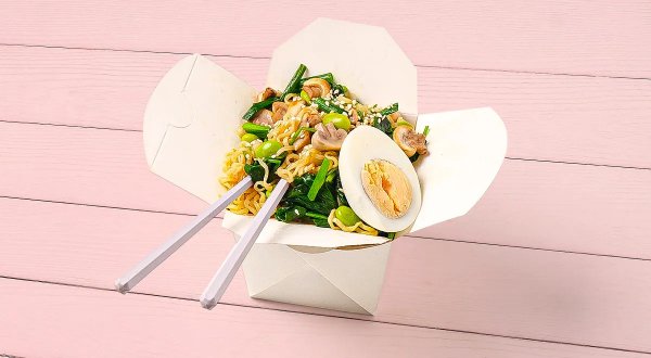 Название: Азиатская лапша с яйцом, эдамаме и шпинатом