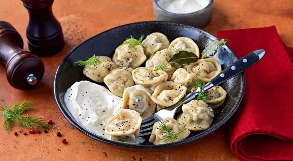 Описание: 1 яйцо200 мл воды1 ч. л. соли600 г пшеничной мукиДля начинки:250 г говяжьего фарша250 г свиного фарша1 большая луковица1 зубчик чеснокасоль, черный перецПриготовить тесто для русских пельменей. Муку просеять горкой. Сделать сверху углубление, влить в него яйцо и 1 ст. л. воды, добавить щепотку соли.Собирая муку с краев к середине, чтобы вода и яйцо не выливались из углубления, замешивать тесто, добавляя небольшими порциями оставшуюся воду. Месить тесто для пельменей до тех пор, пока оно не станет эластичным и однородным, примерно 10 мин. Накрыть влажным полотенцем и оставить на 30 мин. Вода для пельменного теста должна быть ледяная. Для этого ее заранее ставят в холодильник или морозильник.Пока растаивается тесто, приготовить начинку для пельменей. Лук и чеснок очистить и очень мелко порубить. Смешать говяжий и свиной фарш, добавить лук с чесноком, посолить, поперчить. Тщательно перемешать до однородности.Готовое тесто для русских пельменей разделить на 4 части. 3 части накрыть влажным полотенцем и отложить. Оставшееся тесто скатать в жгут толщиной 2 см. Нарезать его на кусочки шириной 1,5 см. На присыпанной мукой поверхности раскатать каждый кусочек теста в тонкую лепешку.Выложить в центр каждой лепешки по 1,5 ч. л. начинки, сложить кружок с начинкой пополам так, чтобы получился полумесяц. Соединить концы полумесяца и скрепить их. Плотно прижать пальцами, чтобы пельмени не разваливались при варке.Выложить пельмени на поднос или плоское блюдо, присыпать мукой. Так же приготовить пельмени из оставшегося теста.