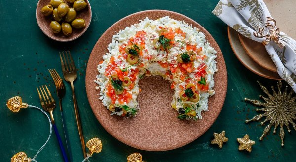 Описание: Картофель – 500 гкуриное филе – 350 гяйца С1 – 4 шт.помидоры – 300 гсвежие огурцы – 250 гветчина – 200 гполутвердый сыр – 200 гмайонез – 150 гзелень, оливки и маслины для украшения салата – по вкусусоль, свежемолотый черный перец – по вкусуПодготовьте ингредиенты для салата Русская красавица. Картофель тщательно вымойте щеткой и отварите до полной готовности (25–30 минут). Дайте полностью остыть.Куриное филе для салата вымойте, положите в кастрюлю и залейте горячей водой. Доведите до кипения и снимите пену. Немного посолите и варите на слабом огне 40 минут. Дайте остыть в бульоне.Яйца сварите вкрутую (10 минут после закипания воды). Охладите проточной водой и очистите. Помидоры и свежие огурцы вымойте, хорошо обсушите. Сыр натрите на средней или мелкой терке.Ветчину и куриное филе нарежьте маленькими кубиками, огурцы – соломкой. Яйца разделите на белки и желтки. Картофель натрите на крупной терке. После этого можно начинать собирать салат.Выложите тертый картофель на большую плоскую тарелку, формируя «кокошник». Осторожно утрамбуйте и смажьте небольшим количеством майонеза. Сверху распределите ветчину. Также смажьте майонезом.Далее слоями выкладывайте огурцы, куриное филе и сыр, промазывая майонезом. Утрамбуйте. Смажьте верх и бока салата майонезом. Белки и желтки по отдельности измельчите. Белки распределите по бокам салата, желтки — по верху. Снова смажьте майонезом.Помидоры разрежьте на половинки, удалите серединки с семенами. Плотную мякоть нарежьте маленькими кубиками. Распределите их сверху по салату. Слегка прижмите кулинарной лопаткой. Украсьте листочками зелени, колечками оливок и маслин, а также майонезом, распределяя его точечно. Уберите салат в холодильник на 1 час.
