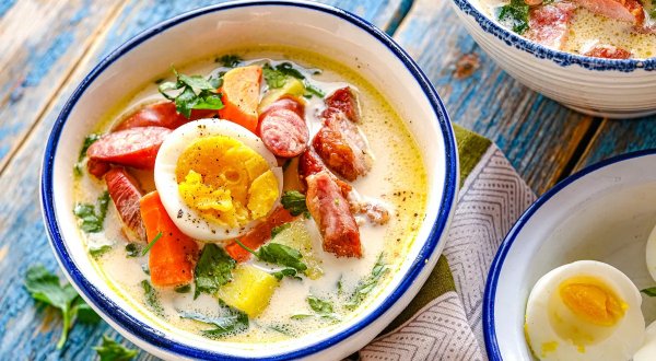 Описание: Свиные ребра копченые 1 кгКолбаски свиные 600 гКвас хлебный 500 млСметана 40% (жирная) 200 гЯйцо куриное (вареное вкрутую) 3 шт.Картофель 3 шт.Морковь 2 шт.Чеснок 3 зубчик(а)Петрушка 5 веточка(и)Лавровый лист 2 шт.Хрен столовый 1 ст.л.Соль по вкусуПерец чёрный молотый по вкусуРебрышки разрежьте по ребру, залейте 3 л холодной воды, доведите до кипения, снимите пену. Добавьте стебли петрушки и варите на медленном огне примерно час, до мягкости мяса.Нарежьте колбасу толстыми ломтиками, морковь — половинками кружков, картофель — кубиками. Добавьте в кастрюлю к ребрышкам колбасу и морковь, а через 10 мин — картошку. Варите еще 20 мин, до готовности овощей. Переложите мясо и овощи в миску, бульон процедите в чистую кастрюлю.Добавьте в бульон квас и лавровый лист, приправьте солью и перцем по вкусу. Варите 5–10 минут. Смешайте сметану с измельченным чесноком и хреном, постепенно введите в бульон. Доведите до кипения и сразу же снимите с огня.Разложите по тарелкам ребрышки, колбасу, овощи и нарезанные кружочками яйца. Залейте бульоном, посыпьте мелко нарезанной петрушкой.