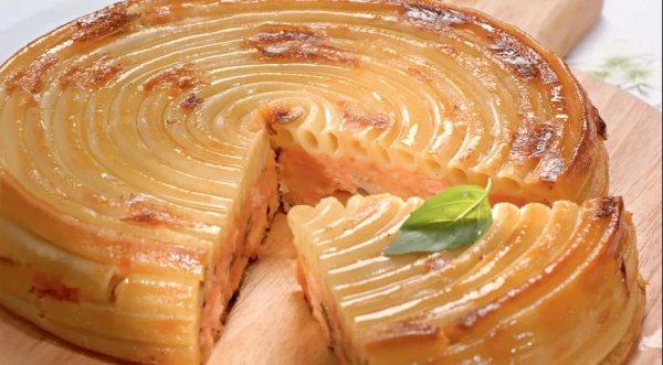 Описание: 2 часа 30 минутДля приготовления 8 порций нужно:филе лосося — 1,5 кгмакароны — 800 гполутвердый сыр — 75 гпомидоры — 6 шт.луковицы — 2 шт.нерафинированное оливковое масло — 2 ст. л.яйца — 3 шт.сливки жирностью 10% — 2 ст. л.белое сухое вино — 3 ст. л.сливочное масло — 15 гветочки петрушки — 2 шт.чеснок — 2 зубчикалавровый лист — 1 шт.сольсвежемолотый черный перецПомидоры опустите на 30 секунд в кипящую воду. Затем выложите шумовкой на дуршлаг, обдайте холодной водой, немного погодя очистите плоды от кожицы. Мякоть измельчите.Филе лосося нарежьте крупными кусками. Лук и чеснок очистите и измельчите. Сыр натрите на средней терке. Петрушку вымойте, обсушите и разберите на листочки.В сотейнике разогрейте оливковое масло и подрумяньте, помешивая, лук и чеснок. Добавьте помидоры. Жарьте 5 минут. Положите рыбу, лавровый лист, влейте вино. Уменьшите огонь, готовьте 10 минут.Переложите куски рыбы в миску. Удалите лавровый лист и продолжайте готовить соус на среднем огне, пока его объем не уменьшится вдвое. Дайте остыть.Рыбу разомните. Добавьте соус, сыр, слегка взбитые яйца и листочки петрушки. Влейте сливки, приправьте солью и перцем, перемешайте.Макароны отварите, согласно инструкции на упаковке. Откиньте на дуршлаг и дайте немного остыть.Духовку нагрейте до 180 °С. Круглую форму смажьте сливочным маслом. Начиная с центра, выложите по кругу дно и бока формы макаронами. Наполните начинкой, накройте фольгой и запекайте 1 час. Оставьте в форме на 10 минут, затем переверните на большое сервировочное блюдоПолезный советСамый вкусный тимбаль получается из жирной семги: она дает особую нежность. Также можно использовать нерку, форель и кижуча: запеканка убудет очень вкусной во всех вариациях.