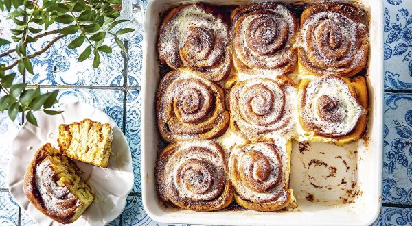 Описание: Для глазури:200 г сахарной пудры100 г греческого йогурта50 г сливочного масла1 ч. л. ванильного сахара3 ст. л. лимонного сокаДля начинки:50 г сливочного масла80 г сахара4 ч. л. молотой корицыДля теста:500 г муки350 г греческого йогурта100 г сахара80 г сливочного масла + 20 г для смазывания формы1 ч. л. ванильного сахарацедра 1 лимона2 ч. л. разрыхлителя для теста1 ч. л. соды1 ч. л. солиРазогрейте духовку до 190 °C. Прямоугольную форму размером 24 х 30 см смажьте маслом. Растопите и остудите сливочное масло.В большой миске смешайте муку, соль, обычный и ванильный сахар, цедру, разрыхлитель и соду. Добавьте греческий йогурт и треть сливочного масла и замесите тесто. Заверните в пленку и оставьте на 15 мин в тепле.Для начинки разотрите лопаткой сахар, корицу и сливочное масло.Раскатайте тесто в пласт толщиной 5 мм и смажьте начинкой. Сверните рулет, разрежьте на 12 частей. Уложите булочки в форму и выпекайте 30 мин.Для глазури тщательно смешайте все ингредиенты. Выньте форму с булочками из духовки и покройте глазурью. Остудите булочки в форме.