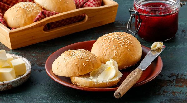 Описание: Мука — 330 г + еще немногопитьевая вода — 200 млрастительное масло — 30 млсухие дрожжи — 5 гсахар — 10 гсоль — 4 гкрепкий чай для смазывания булочексемена льна или кунжута для посыпки булочек Приготовьте опару. В миску просейте 150 г муки. Добавьте сухие дрожжи, сахар и влейте теплую воду (35 °C). Перемешайте венчиком. Накройте полотенцем и оставьте в теплом месте на 30 минут.К слегка поднявшейся опаре добавьте соль, растительное масло и оставшуюся муку (ее тоже следует просеять через мелкое сито). Тщательно вымесите тесто вручную или, что лучше, крюками миксера. Оно должно получиться мягким, упругим, не липким.Получившееся тесто сформируйте в шар и положите в большую миску. Накройте полотенцем и уберите в теплое место. Оставьте тесто на 1 час для расстойки. Оно должно увеличиться в объеме в 2 раза.Выложите тесто на рабочий стол, подпыленный мукой. Разделите на 10 равных частей. Каждую подкатайте в шарик и выложите на противень, выстланный бумагой для выпечки. Накройте полотенцем и оставьте на 30–60 минут.Духовку нагрейте до 210 °C. Заготовки из теста смажьте с помощью кисточки холодным крепким чаем, посыпьте льном или кунжутом. Выпекайте около 20 минут до подрумянивания.