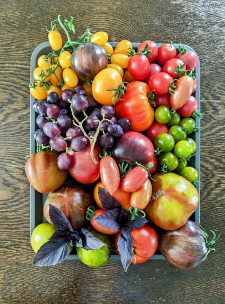 Подарок в виде фруктов, ягод, овощей и других зелёных, растительных вкусняшек