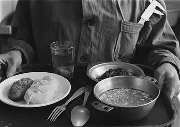Котлета пюре, салат, борщ, компот. Хлеб По всей видимости уже был на столе