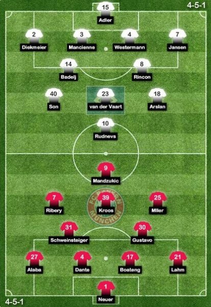 Ориентировочные составы на матч Гамбург-Бавария от журнала«Kicker»: