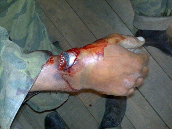 Описание: Я бы долго думал, как могло такое произойти, но все стало на свои места, когда я узнал подробности. Вашему вниманию результат неправильного обращения с подствольным гранатометом. Вследствие самопроизвольного выстрела снаряд ВОГ-25 застрял в руке солдата. Зрелище не из приятных, мягко говоря. А уж какие наверное ощущения.