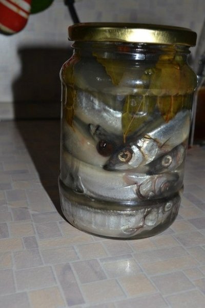 Описание: Мойву промыть и сложить в банку.Или в несколько банок.Приготовить рассол : на 1 литр воды - 3 ст.л. соли,2 ст.л. сахара,5 лаврушки,по 1 ч.л. душистого перца горошком, гвоздики и кориандра.Рассол довести до кипения и 10 минут прокипятить.Потом остудить и залить рыбку в банках.Можно добавить 1 ч.л. уксусной эссенции на 1-л банку с рыбой. Тогда посол будет пряным.Но можно и не добавлять.Лучше пару ст.л. подсолнечного масла.И на сутки в холодильник.
