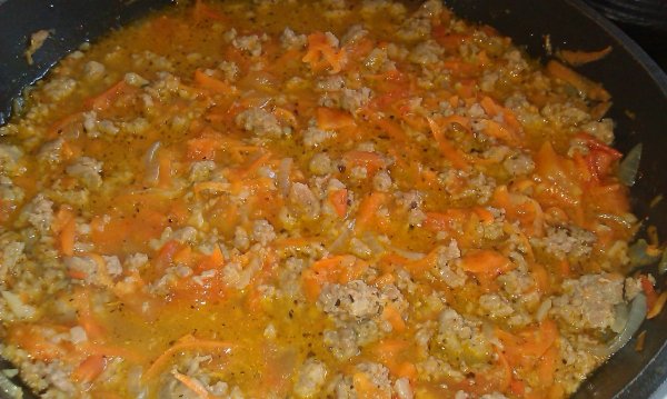 мясная подлива: фарш из говядины и свинины, лук, морковь, помидоры, соль, перец, прованские травы, приправа для мяса:)