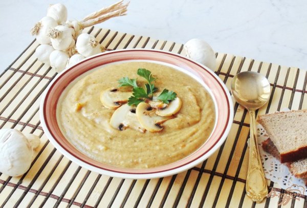 Описание: Суп-пюре изшампиньонов. Одним из классическихрецептов супа-пюреявляется грибной суп совощами, взбитыйблендером илимиксером. На вкусовыхкачества это никак неотражается. А воторигинальность илёгкость вприготовлении - налицо. Такой суп вполнедиетический.Ингредиенты:Шампиньоны200 грамм.Картофель2 шт.Лук репчатый2 шт.Морковь1 шт.Коренья50 граммЧеснок1 зубчикМасло подсолнечное20 граммМука50 граммСольпо вкусуВода500 млЛавровый лист2 штукиПриготовление:Картофель, морковь илук чистим, моем ипроизвольно нарезаем.Грибы и коренья(у менякорень петрушки) моеми чистим. Грибы режем,а корень натираем натёрке.Нарезанные картофель,морковь и половинулука кладём вкастрюлю и заливаемводой или бульоном.Кладем лавровыйлист.Ставим варить.Грибы и вторуюполовину лука, а такженатёртые кореньявыкладываем насковороду срастительным маслом инемного тушим насреднем огне.На сухой сковородеподжарим до бежевогоцвета муку.Снимаем с огняварившиеся овощи.Выкладываем вкастрюлю тушёные слуком и кореньямигрибы. Добавляемподжаренную муку ичеснок.Солим иперемешиваем.Варим ещё на среднемогне минут пять.Даёмнемного остыть ивзбиваем блендером.Украшаем и подаём кстолу.
