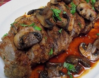 Описание: Свинина, запеченная ввине.Ингредиенты длясвинины, запеченный ввине1 кг мякотинежирной свинины(одним куском)150 г шампиньонов150 мл сухогокрасного вина2-3 лавровых листачеснок по вкусуприправа дляшашлыкасольмолотый черныйперецчерный перец-горошекрастительное маслоРецепт приготовленияСвинину вымыть,обсушить бумажнымполотенцем, посолить,приправить по вкусумолотым чёрнымперцем.Чеснок очистить отшелухи и пропуститьчерез пресс.В плотный пакетвылить вино, добавитьчерный перец-горошек,измельчённый чеснок,лавровый лист иприправу к шашлыку.Положить в пакет мясои вымытые грибы.Оставить вхолодильнике длямаринования на 2 часа.Затем завернуть свининув фольгу и запечь впредварительноразогретой до 160 Сдуховке в течение 2часов.По истечениеуказанного временифольгу убрать,поместить в формугрибы, сбрызнуть ихрастительным маслом иготовить ещё 30 мин,увеличив температурудо 200 С.При подаче нарезатьмясо порциональнымикусками.