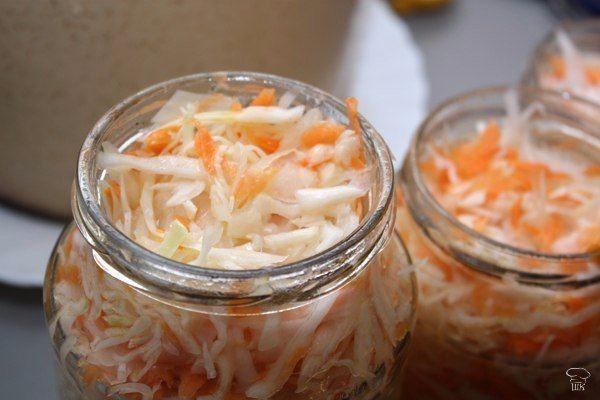 Описание: ОЧЕНЬ БЫСТРАЯКАПУСТКА.Ингредиенты: три килограммакапусты три крупныеморковки 3-4 зубчика чеснока 200 гр.сахара 3 столовые ложкисоли 250 гр. подсолнечногомасла 200 гр. уксуса 9%Приготовление:Берём из расчёта трикилограмма капусты.Капусту нашинковать.Натереть три крупныеморковки на крупнойтёрке. Выдавить изчесночницы 3-4 зубчикачеснока. Всёперемешать.Делаем маринад:Полтора литра водыставим на огонь.Добавляем 200гр.сахара, 3 столовыеложки соли( без верха),250 гр. подсолнечногомасла.Когда закипитвлить 200 гр. уксуса 9%.Должно покипеть 2-3минуты.Маринад готов.Заливаем капустугорячим маринадом(Капуста от этого чутьсмягчается. Но толькочуть-чуть. Поэтому небойтесь заливатьгорячим, прямо с плиты.Капуста постоит в этоммаринаде часа 2 .Иможно есть. Сейчас таккапусту делают многие.Раньше делалиобычным способом,приходилось ждатьпока она забродит,начнёт киснуть. А этотспособ быстрый.Капуста вкусная,витаминная.ХРУСТЯЩАЯ).Перемешиваем. Даёмпостоять 2 часа. Опятьперемешиваем ифасуем в банки.Очень вкусно и полезно!
