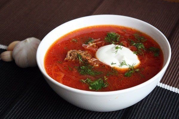 Описание: Русский борщ.Ингредиенты:Свинина - 400 гЛавровый лист - 2 шт.Перец душистый - 5 шт.Морковь - 200 гКапуста белокочанная -200 гСоль 1 чайная ложкаУксус столовый - 20 млСахар-песок - 20 гГовядина духовая - 400гПерец черныйгорошком - 5 шт.Лук репчатый (100г) - 1штСвёкла - 300 гСельдерей корневой -50 гРастительное масло - 50млПомидоры красные -500 гПриотовление:1. Ставим варить мяснойбульон (свинину иговядину 1:1).Промытое мясозаливаем чистойхолодной водой (3,5-4литра) и на сильномогне доводим докипения. После этогоогонь убавляем, чтобыкипело совсем чуть-чуть, снимаемпоявляющуюся наповерхности пену.Варить мясо нужнооколо 1,5 часов. Когдаего можно будет легкопроткнуть вилкой илиножом, оно готово.Примерно в серединеварки добавляемлавровый лист и перецгорошком.2. Репчатый лук режембрусочками. Для этоголуковицу очищаем,режем на 4 части итонко шинкуем.Луковица должна бытьдовольно крупной.3. Морковь и свеклурежем тонкойсоломкой. Считается,что нарезанные овощилучше подходят дляборща, чем натертые натерке.4. Капусту тонкошинкуем, а сельдерейнарезаем соломкой. Воригинальном рецептенужно использоватькорень петрушки, но уменя его не было,пришлось заменитьсельдереем. В целом,это, наверное, влияет навкусовые нюансы, но неслишком сильно.5. Когда мясо будетготово, его нужновынуть из бульона инарезать порционнымикусочками.6. Бульон процедить,вернуть в кастрюлю,посолить и положитьтуда нарезанное мясо.Обратите внимание, чтосоль добавляетсяименно в конце варкибульона. Впроцеженный бульонкладем капусту ипродолжаем варить доее готовности.7. Свеклу, лук, морковьи сельдерей (петрушку)кладем в кастрюлю срастительным маслом,добавляем немного(100-150 мл) бульона итушим под крышкой намедленном огне около20 минут. В процессетушения овощи нужноперемешивать, чтобыони не пригорали.8. В середине тушениядобавляем в овощиочищенные инарезанные помидоры,сахар и уксус. Тушим дополной готовностиовощей, после чегодобавляем их в бульонс готовой капустой.Готовый борщвыключить и накрытькрышкой, чтобы оннемного настоялся.9. При подаче на стол вборщ добавляютсметану и зелень.Отлично подходит кборщу чеснок и черныйхлеб.