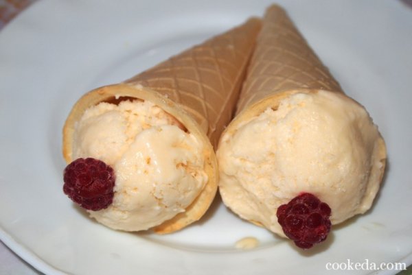Описание: Домашнее мороженоепломбир.Время приготовления3,5 часаИнгредиенты:3 шт. желток яичный700 млсливкижирность от 33 %0,5 стакана сахарПримечания длярецепта:Разновидностьмороженогоподназванием "пломбир"любят все безисключения, сейчас вмагазинах нет дефицитана этот вид десерта.Однако в составесегодняшнегомороженогомало чегоесть натурального,поэтому предлагаюприготовить пломбирсамостоятельно.1. Желтки взбить ссахаром миксером дообразования белоймассы.2. Добавить к ним 200мл сливок и взбить дооднородности.3. Вылить массу вкастрюльку с толстымдном, включить среднийогоньи проварить дозагустения.После этого кастрюлюснять и охладить массудо комнатнойтемпературы либовынести на балкон (еслимороженое готовится взимний период).4. Выложить массу всудок и убрать вморозильную камеру.Желтковая массадолжна находиться вморозилке дополузамороженногосостояния.5. Тем временем взбитьоставшиеся сливки впышную густую массу.6. Подготовленнуюжелтковую массудостать из морозильнойкамеры, выложить всливки и взбить дооднородного состояния.Выложить массу в судоки убрать в морозильнуюкамеру на полчаса.7. По истечении временидостать судок,размешать содержимоеложкой, а затем взбитьмиксером, чтобы небыло льдинок. Убратьсудок в морозильнуюкамеру снова на полчасаи опять перемешать.8. После этогомороженое можнооставить в морозилкена 2-3 часа.9. Готовое мороженоевыкладывать вкреманку илинаполнить имвафельные конусы.