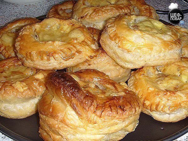 Описание: ГУСАРИКИ.Ингредиенты:- готовое слоеное тесто- фарш- сыр- грибы- лук- морковь- яйцо- соль- перецПриготовление:1. Готовим фарш:Обжариваем отдельногрибы, мелконарезанные лук сморковкой (натертуюна терке), солим иперчим. Смешиваем всеингредиенты с фаршем,яйцом.2. Из готовогослоенного теста:вырезаем кружки, вполовине кружковделаем рюмкойотверстие, кладемфарш, накрываемкружком с дырочкой,вилкой придавливаемкрай, смазываем яйцом,посыпаем сыром иставим в духовку на 30минут.Выпекать при 180градусах, подавать сзеленью и сметаннымсоусом, для этого вбаночку сметанынадавить чеснок,посолить по вкусу.Приятного аппетита!