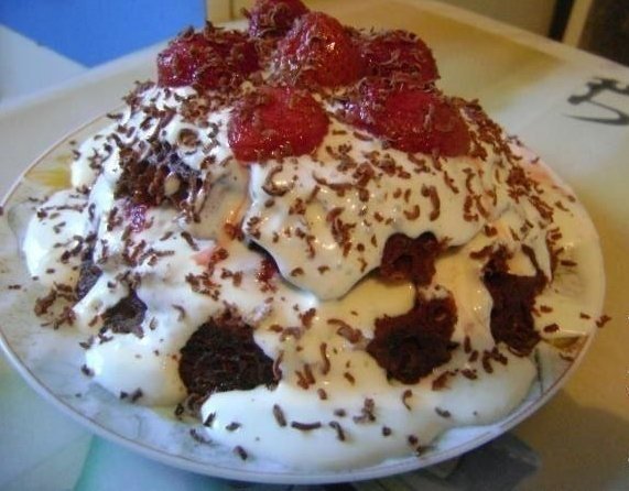 Описание: Торт МинуткаИнгредиенты:-Яйцо куриное - 1 шт.;-Молоко - 5 ст.л.;-Масло растительное - 3ст.л.;-Какао-порошок - 2ст.л.;-Сахар - 4 ст.л.;-Мука пшеничная - 3ст.л.;-Крахмал - 1 ст.л.;-разрыхлитель теста - 1ч.л.;Приготовление:Итак,приступаем...Сначалавзбиваем яйцо ссахаромЗатем к нашей смесидобавляем какао иаккуратноперемешиваем.Теперь к нашейшоколадной смесидобавляем муку,крахмал иразрыхлитель теста ивсе тщательноперемешиваемДалее к получившемусядостаточно густомутесту добавляемрастительное масло имолоко. ХорошовымешиваемВыливаем наше тесто, вформу, смазаннуюмасло и отправляем вмикроволновку намаксимальнуюмощность. Еслимощность 1000, то на 3минуты, если 800 - то на3,5 минуты.Через 3 минуты у насполучается вот такойзамечательный бисквитТеперь превращаемнаш бисквит взамечательный тортик.Для этого, бисквитрежем на 2 части,взбиваем сметану ссахаром, которойпропитываем наштортик, прослаиваемклубникой иприглашаем всех к чаю.Приятного аппетита.