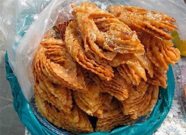 Описание: ХВОРОСТ КРЫМСКИЙ ИЛИПАХЛАВА ПЛЯЖНАЯТесто:3 ст. муки1 ст. минералки1 ч. л. сахара1 щепотка соли3 ст. л. водки(Я добавила ещё 1 ст. л.сметаны.)Муку высыпать в миску,сделать углубление. Вямку вылить сметану,минералку, водку, соль,сахар и ложкой всехорошенько смешать.После вымесить доэластичности на столе,присыпанном мукой. Ипусть тесто теперьнемножко полежит подсалфеточкой (чтобкорочка необразовалась). Потомещё раз вымесить.Далее раскатываемтоненько (около 1 мм).(Чтобы удобнее былораскатывать, яподелила тесто на 5частей поменьше)Получившуюся пластинуне очень плотно, но и нерасхлябано, скатываемв рулет. (Вначале ябоялась, что тестослипнется послескручивания, поэтомураскатанный пластсмазывала сливочныммаслом. Когда же маслонеожиданнозакончилось,последнюю порциютеста пришлосьнемножко присыпатьмукой и на свой страх ириск скручивать. Искажу, что получилосьдаже ЛУЧШЕРазворачивалиськусочки во фритюреещё красивее ) Беремострый нож и нарезаемнаш "рулет" под углом45 градусов на кусочкитолщиной около 2 см.(Чтобы при дальнейшемобжаривании тесто нераскручивалось,свободный край янемножкоприщипывала к самомупоследнему оборотутеста.)Раскаляем растительноемасло (около 0,5 л) вглубокой сковородке,обжариваемобразованные кусочки сдвух сторон до вкуснойзолотистости. Приобжарке кусочки рулетаприоткроются иполучатся слоистыекусочки.Обжаренную пахлавувыкладывать набумажное полотенце,чтобы впиталисьостатки масла.Теперь приготовимсироп:1 ст. сахара2/3 ст. воды1 ч. л. медаВарить на огне,постоянно помешивая,до тех пор, покажидкость не пойдетпузыриками. Окунать всироп нужно уженемного остывшуюпахлаву - чтобы"хрустящесть" неисчезла. Сверхуприсыпатьизмелченными орехами.Либо сахарной пудрой.Угощайтесь!
