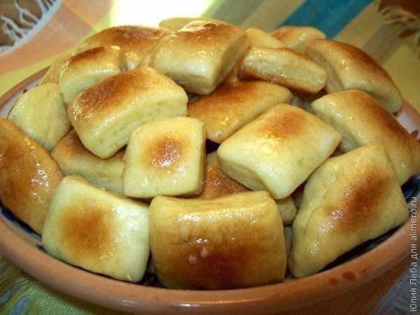 Описание: Пампушки на кифире счесноком.Ингредиенты: 0,5 литра кефира 1 ч.л. сахара 1 ч.л. соли 2 ч.л. соды мукаПриготовление:Вылить кефир в миску.Всыпать соду,дождаться, покаперешипит. Добавитьсоль и сахар.Размешать.Просеять муку,добавлять понемногу ккефиру.Замесить тесто.Вымешивать 5 минут наприсыпанной мукойдоске до гладкости.Раскатать тесто в пласттолщиной около 1 см. Яразделила тесто дляудобства на несколькочастей, которыераскатывала поотдельности.Разрезатьострым ножом наквадратики. Можносделать пампушкилюбой формы и любого(но не очень большого)размера. Мне большенравится, когдапампушки немногоотличаются по размеру,сидишь и выбираешь,поменьше взять илипобольше.Разогреть на среднемогне сухую сковороду.Выложить на неёпампушки. Совсемблизко лучше не класть,т.к. они немногоподнимутся, да ипереворачивать будетнеудобно. Убавитьогонь и накрытьсковороду крышкой.Печь до зарумяниваниясначала на однойстороне, затем надругой. Выложитьготовые пампушки вкастрюлю с плотнозакрытой крышкой,чтобы они не остывали.Ингредиенты длясаламура: 1 стаканрастительного масла 6 зубчиков чеснока щепотка солиПриготовлениесаламура:Чеснок продавить черезпресс. Я взяла крупныезубчики, т.к. оченьлюблю чеснок.Добавить щепотку солии влить растительноемасло. Я беруподсолнечное нерафинированное и недезодорированное, т.к.рафинированное замасло особо не считаю.Перемешать. Влить вкастрюлю спампушками. Закрытькрышкой ихорошенько встряхнутькастрюлю, чтобысаламур распределилсяравномерно. Пампушкис чесночным саламуромготовы купотреблению!Приятного аппетита!