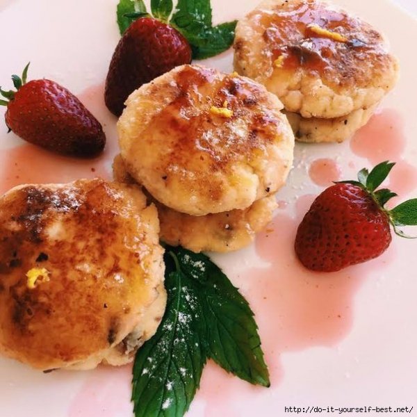 Описание: СЫРНИКИ С ИЗЮМОМ ИАПЕЛЬСИНОВОЙ ЦЕДРОЙ,ПОЛИТЫЕ КЛУБНИЧНЫМСИРОПОМ.Ингредиенты:Творог 500 г2 яйцаСахар - 4-5 столовыхложек (по вкусу),Ванильный сахар - 1чайная ложка,Мука - 100 грОливковое масло дляжаркиЩепотка солиИзюм, цедра апельсинаПриготовление:1. Творог хорошоизмельчить в блендере.2. Добавить яйца, сахар,изюм,ванильный сахар,щепотку соли и хорошоперемешать.3. Всыпать просеяннуюмуку и еще раз хорошоперемешать массу.Всковороде разогретьнемного масла,выложить сырники,накрыть сковородукрышкой и обжариватьна слабом огне дорумяности.