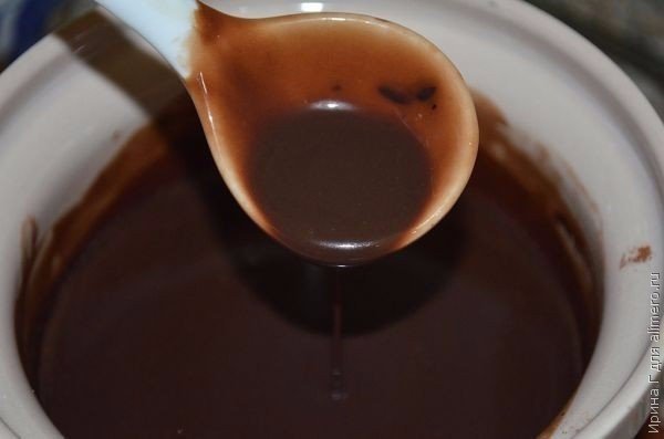 Описание: Шоколадный соус дляблинов и не только.Ингредиенты:35 г горькогошоколада;120 г качественной (безудешевляющихпродукт добавок)сгущенки;15 г сливочного масла;1 ст.л. какао безнаполнителей;60 мл сливок 10%жирности.Приготовление:1. Масло и шоколаднужно растопить наводяной бане.2. Чтоб не перегреть, ясняла кастрюльку скипящей водой сплиты. Перемешала.3. Всыпала ложкукакао. В рецептепредлагалось какаокласть в конце. Первыйраз я так и сделала, номне не понравилосьтем, что какао трудноразмешать, не получивмного мелкихкомочков. Я посчитала,что его лучшеположить раньше, досливок, когда смесь ещегустая. Так егоразмешивать оказалосьгораздо проще.4. Добавила кшоколадно-масляноймассе сгущенноемолоко.5. Размешала. Вылилаполовину сливок. Сноваперемешала.6. По чуть-чутьвыливала остаткисливок и довела смесьдо однородности.7. Соус получаетсядовольно густым, нерастекается, но и нетвердеет в холоде.8. Вот и все шоколадный соус кблинам, фруктам,мороженому или просток булочке готов.Приятного аппетита!