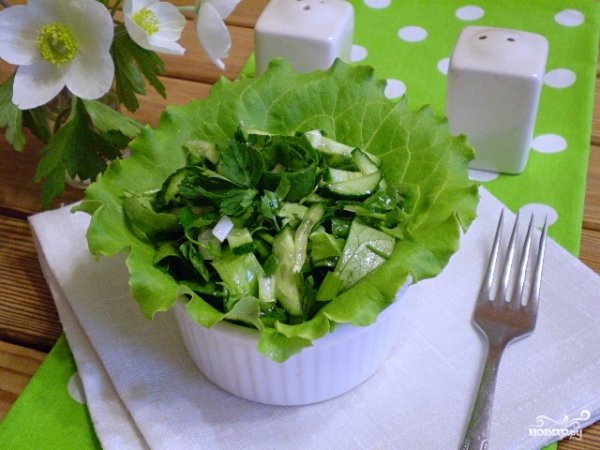 Описание: Салат зеленыйВремя приготовления:10 минКоличество порций: 3-4Ингредиенты:Листья салата — 1ПучокЛистья шпината — 1ПучокПетрушка — 1 ПучокЗеленый лук — 1 ПучокОгурцы — 2 ШтукСоль, перец черный — 0По вкусуОливковое масло — 1-2Ст. ложкаПриготовление:1. 1. Приготовимнеобходимое длясалата. Всю зеленьи огурцытщательновымыть, дать стечьводе.2. 2. Нарезаемширокимиполосками листьяшпината. Можнопросто порватьруками.3. 3. Нарезаемширокимиполосками илирвем рукамилистья салата.4. 4. Нарезаемзеленый лук.5. 5. Нарезаемпетрушку.6. 6. Режем соломкойогурцы.7. 7. Собираем всюзелень и огурцы всалатнике, солимпо вкусу,добавляем перецчерный молотый.Поливаем салатмаслом.8. 8. Перемешиваем иподаем сразу кстолу. Приятного!