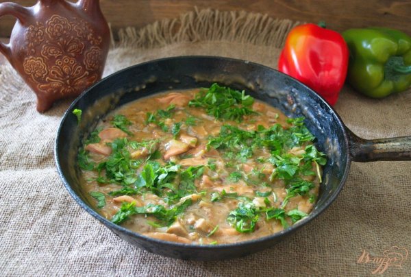 Описание: Студенческая подливкаиз сосисок.Такая подливка этоочень по студенчески,когда осталось оченьмало продуктов, акушать хочется.Получается оченьвкусно. Такую подливкуможно подать к любомугарниру.Ингредиенты:Буженина [10]Буженина100 грСосиски4 штЛук репчатый2 штСок томатный1 стаканВода0,5 стаканСольпо вкусуПерец черныйпо вкусуМука2 ст. л.Масло растительное30 млПетрушка1 пучокСосиски очистить отупаковки. Каждуюразрезать пополам ипотом на полукольца.Если берете сардельки,то можно нарезать ещена более мелкиекусочки.Репчатый лук нарезатькубиком.На растительном маслеобжариваем дорумяности лучок.Добавляем сосиски иобжариваем 2 минуты.Добавляем муку. Жарим3 минуты.Вливаем воду.Добавляем томат.Перемешиваем иразбивая комочкидоводим массу дооднородностиподливки. Нарезаембуженину кубиком идобавляем в подливку.Измельчаем зелень.Добавляем в подливку.Солим, перчим, можнодобавить других специй.Выключаем. Подаем кстолу.