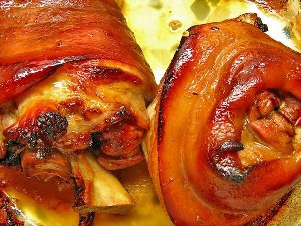 Описание: Рулька по-польскиИнгредиенты:Свиные рульки 3ШтукиМорковь 1 ШтукаЛук 2 ШтукиСельдерей 1 ШтукаПерец горошком 15ШтукГвоздика 4 ШтукиЛавровый лист 2ШтукиПиво светлое 1 ЛитрМед 5 Ст. ложекПерец чили 1 ШтукаСоль 1 По вкусуКоличество порций: 4-5Как приготовить"Рулька по-польски"1. Первым деломподготовим рульки.Размораживаем,обмываем, иобсушиваемполотенцем.2. В кастрюлю с водойзакладываемочищенные лук сморковкой исельдереем, и перцемгорошком. Добавимгвоздику и лавровыйлист. Как закипит -кладем сюда же рулькии варим на маленькомогне час-полтора.3. Приготовим темвременем маринад. Впиве разводим мед,добавляем перец чили,и соль по вкусу. Я ещедобавила томатнуюпасту, но это не порецепту :)4. Опускаем в маринадсвиные рульки, оставимпостоять как можнодольше. Можно даже наночь5. Запекаем напротивне, застеленномпекарской бумагой, илина решетке гриляпримерно час.