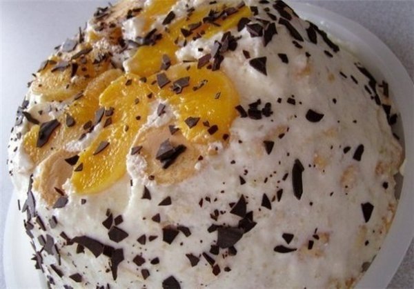 Описание: Торт на скорую руку безвыпекания в духовке1 пачка масла - 200 грсметана - 250 гр (любойжирности)3/4 стакана сахарногопескамаленькую баночкуконсервированныхананасов или любыхмягких фруктов(абрикосы, бананы,персики)200- 300 гр обычныхмаленьких крекеров(рыбки, цифры, буквы)Приготовление:1. Берем размягченноемасло, смешиваем егосо сметаной и сахаромдо полученияоднородной массы.Затем отправляем тудафрукты. И в концевысыпаем крекеры. Всеперемешиваем.2. Все, тесто готово.Затем берем форму,выстилаем ее пищевойпленкой иперекладываем нашетесто. Затем накрываемпищевой пленкой иприменаем, чтобы тесторовно легло по форме.И ставим на ночь вхолодильник.3. Утром достаем его,открывакм пленку ивыкладываем натарелку. Можноукрасить тертымшоколадом или у когона сколько хватитфантазии. Все тортготов.Попробуйте,получается оченьвкусно и самое главноебыстро.