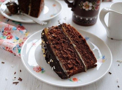 Описание: Шоколадно-карамельный тортИнгредиенты:карамель Стакан=250мл.200 гр. сгущенногомолока2 ст. ложкикоричневого сахара0.5 стаканаизмельченных грецкихорехов55 гр. сливочного маслаТесто:1 стакан с горкой муки1 3 стакана какаопорошка1 3 стаканарастительного масла0.5 стакана сахара0.5 ч. ложки соды0.5 ч. ложкиразрыхлителя0.5 ч. ложки 9% уксуса0.5 стакана сметаны1/4 ч. ложки соли1 яйцо1 пакетик ванильногосахара (10 гр.)0.5 стакана горячейводыКрем-глазурь:90 гр.концентрированногомолока (можнозаменить жирнымисливками)2 ст. ложкикоричневого сахара25 гр. сливочного масла130 гр. горькогошоколада (с высокимсодержанием какао)Приготовление:2 разъемных формыразмером 19 см.застелить целикомпергаментом смазаннымсливочным маслом.Приготовить карамель.В кастрюле смешатьсгущенное молоко,сахар и сливочноемасло, прогревать покамасло и сахар нерастают (не доводить докипения), карамельразлить по формам,сверху посыпатьорехами, дать остыть.Духовку нагреть на 180градусов.В миске смешатьпросеянную муку, какао,разрыхлитель, соду ,уксус, соль, сахар,ванильный сахар,растительное масло,сметану и яйцо, влитьводу, перемешатьлопаточкой дополучения однородноготеста, разлить тесто поформам на карамель,поставить в духовку,выпекать до готовности(до сухой спички).Готовые коржиостудить в формахминут 5, затемперевернуть нарешетку, осторожноснять пергамент, датькоржам полностьюостыть.Приготовить крем. Вкастрюльке нагретьконцентрированноемолоко (или сливки)масло, сахар и шоколадполоманный на кусочки,помешивать пока массане станет однородной,снять с огня.Нанести половину кремана первый корж поверхкарамели, накрытьвторым коржом такчтобы карамельныйслой оказался сверху,покрыть оставшимсякремом, верх можнопосыпать орехами,убрать торт вхолодильник на ночь.