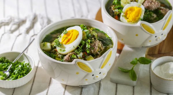 Описание: 🟥 Щавелевый суп с фрикаделькамиТрадиционный вариант супа из щавеля издавна был вегетарианский, а белковые компоненты — варёные яйца и сметану добавляли уже в готовый суп. Более того, в жару его подавали холодным. Немного позже в щавелевом супе появились мясные фрикадельки и иногда его стали варить на говяжьем бульоне, что увеличивало калорийность и делало первое более сытным. Выбирайте на свой вкус, на чём его варить. Самый простой рецепт супа — на овощном бульоне.📌 Нужно:🔹 Щавель – 200 г🔹 Картофель – 2 шт.🔹 Морковь – 1 шт.🔹 Лук репчатый – 1 шт.🔹 Сахар-песок – 1 ч.л.🔹 Перец чёрный молотый – по вкусу🔹 Соль – по вкусу🔸🔸🔸 Для фрикаделек:🔹 Говяжий фарш – 400 г🔹 Яйцо куриное – 1 шт.🔹 Чеснок – 1 зубчик🔹 Манная крупа – 1 ч.л.🔹 Травы сушёные – 0.5 ч.л.🔹 Молотый чёрный перец – по вкусу🔹 Соль – по вкусу🔸🔸🔸 Для подачи:🔹 Яйцо куриное – 3 шт.🔹 Сметана 18% – по вкусу🔹 Лук зелёный – по вкусу🔹 Зелень – по вкусу📌 Готовка: 🟩 Очистите картофель и морковь, нарежьте их небольшими кубиками. Луковицу оставьте целой. Щавель тщательно промойте, откиньте на дуршлаг, чтобы стекла вода.🟩 В кастрюле доведите до кипения 2 л воды. Добавьте в воду кусочки моркови и картофеля, целую луковицу, снова доведите до кипения, посолите и варите бульон 20 минут.🟩 Пока овощи варятся, приготовьте фрикадельки. В фарш добавьте манную крупу, яйцо, чеснок, пропущенный через пресс, посолите, поперчите по вкусу и тщательно перемешайте. Мокрыми руками сформируйте из фарша фрикадельки размером с грецкий орех.🟩 Из овощного бульона удалите луковицу. Положите в бульон фрикадельки, доведите до кипения, посолите ещё, если необходимо, убавьте огонь и варите в течение 25 минут.🟩 У щавеля отделите стебли от листьев. Мелко порубите их в разные миски. Сначала положите в суп стебли. Добавьте немного сахара для усиления вкуса и варите 7-10 минут. Затем добавьте в кастрюлю листья. Снова доведите до кипения, убавьте огонь и варите суп ещё 5 минут. Выключите огонь, накройте крышкой.🟩 Для украшения щавелевого супа отварите яйца вкрутую в течение 10 минут в кипящей воде. Остудите яйца под струёй холодной воды, очистите, разрежьте на половинки. Зелёный лук, укроп и петрушку мелко порубите.🟩 Разлейте приготовленный суп с фрикадельками и щавелем по порционным тарелкам, в каждую положите по половинке варёного яйца и немного рубленой зелени. Подавайте со сметаной.🔥 НА ЗАМЕТКУ. Фрикадельки для щавелевого супа по этому рецепту можно приготовить не только из говяжьего, но из смешанного мясного фарша (говядина + свинина), а также из филе курицы и индейки.🔥 КСТАТИ. Чтобы суп с фрикадельками и щавелем получился более сытный и наваристый, приготовьте его на мясном или курином бульоне. И добавьте традиционную зажарку из моркови, лука и стебля сельдерея. Для этого овощи мелко нарежьте и обжарьте на растительном масле.