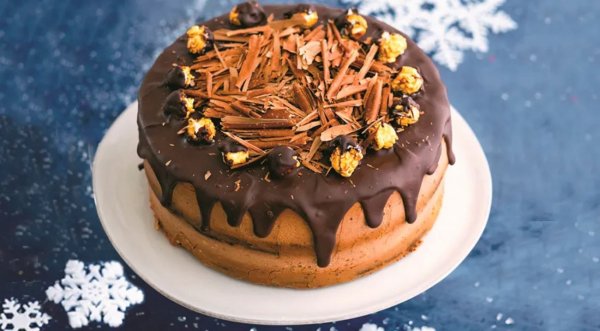 Описание: Десерт на 8 порций. Для праздничного стола.📌 Нужно:🔻🔻🔻 Для орехового бисквита:🔹 6 яиц🔹 200 г миндаля🔹 100 г грецких орехов🔹 1 ч. л. разрыхлителя🔹 1 ч. л. растительного масла для смазывания формы🔹 щепотка соли🔻🔻🔻 Для пропитки:🔹 150 г сахара🔹 100 г воды🔹 50 г коньяка🔻🔻🔻 Для сливочного крема:🔹 200 г сливочного сыра🔹 100 г сливок жирностью 33%🔹 130 г сахарной пудры🔻🔻🔻 Для шоколадного декора:🔹 50 г попкорна🔹 200 г тёмного шоколада🔹 плитка шоколада - для стружки📌 Готовка:🔷 Делаем бисквит. Яйца с сахаром взбивайте миксером 20 мин. Миндаль измельчите в муку в кофемолке. Грецкие орехи мелко порубите. Постепенно засыпайте в яичную смесь миндальную муку, размешайте. Добавьте грецкие орехи, щепотку соли, разрыхлитель. Разогрейте духовку до 160 °С. Форму для выпечки диаметром 22-24 см смажьте маслом, вылейте тесто и выпекайте бисквит 35 мин. Бисквит выньте из формы, переверните и остудите на решётке.🔷 Делаем крем. Сливки взбейте миксером в охлаждённой посуде, до загустения, начиная с маленькой скорости и постепенно прибавляя обороты. Постепенно добавляйте сахарную пудру, продолжая взбивать до устойчивых пиков. Введите сливочный сыр, осторожно перемешивая массу до однородности.🔷 Готовим пропитку. Сахар растворите в 100 г воды, доведите до кипения, варите 2 мин. Добавьте коньяк и прокипятите, помешивая, ещё 2 мин.🔷 Собираем торт. Разрежьте бисквит на 3 коржа. Нанесите пропитку, оставьте на 10-15 мин. Промажьте коржи сливочным кремом, обмазывая боковые поверхности.🔷 Украшаем торт. Растопите шоколад на водяной бане и вылейте эту массу на торт, оставив немного шоколада для попкорна. Ложкой распределите шоколад по поверхности торта, сделав характерные подтёки. Украсьте торт шоколадным попкорном. Выложите сверху шоколадную стружку.🔥 НА ЗАМЕТКУ. Чтобы сделать стружку из шоколада, сначала охладите плитку, а затем широким ножом настругайте тонкие ломтики шоколада. Стружку сразу используйте для декора.🔥 СОВЕТ. К торту с шоколадным декором можно сделать шоколадный крем. Для этого добавьте к сливочному крему 4 ст. л. порошка какао и тщательно перемешайте.