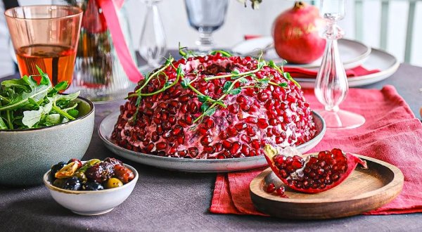 Описание: Салат. Для праздничного стола.📌 Нужно (на 6 порций):🔹 Картофель – 3 шт.🔹 Свекла – 2 шт.🔹 Морковь – 2 шт.🔹 Яйцо куриное – 2 шт.🔹 Куриное филе – 300 шт.🔹 Грецкий орех – 50 г🔹 Чернослив – 50 г🔹 Гранат – 1 шт.🔹 Майонез Лёгкий – 150 г🔹 Сметана 10% (нежирная) – 150 г🔹 Масло растительное рафинированное – 1 ст.л.🔹 Соль– по вкусу🔹 Перец чёрный молотый – по вкусу📌 Готовка:🔷 Картофель очистите и отварите. Яйца отварите в крутую, остудите и очистите. Натрите картофель и яйца на крупной тёрке в отдельные миски. Курицу отварите до готовности.🔷 Свеклу и морковь отварите до полной готовности, очистите и натрите на крупной терке. Чернослив залейте кипящей водой и оставьте на 20-30 мин, чтобы он стал мягким.🔷 Куриное филе остудите и нарежьте маленькими кусочками. Посолите и поперчите. Грецкие орехи порубите ножом, затем перемешайте со свеклой и немного посолите.🔷 Приготовьте соус для салата. Смешайте в мисочке сметану и майонез, приправьте солью и молотым чёрным перцем по вкусу. Можно добавить немного чеснока, пропущенного через пресс.🔷 В центр большого плоского блюда поставьте стакан. Выложите вокруг него слой картофеля в виде круга. Смажьте тонким слоем соуса. Затем выложите курицу, смажьте соусом и следом – чернослив. Следующим слоем положите яйца, затем морковь, свеклу с орехами, промазывая соусом каждый слой.🔷 Гранат очистите от кожуры и перегородок. Свеклу густо посыпьте гранатовыми зернами. Аккуратно уберите стакан и подавайте салат гранатовый браслет на стол.🔥 СОВЕТ. Чтобы ингредиенты салата лучше пропитались соусом, уберите блюдо на пару часов в холодильник перед тем, как подавать его на стол.🔥 НА ЗАМЕТКУ. Свеклу для салата лучше не варить, а запекать в духовке (около часа при 190°C): так корнеплод получится более вкусным, да и текстура его будет менее водянистой.