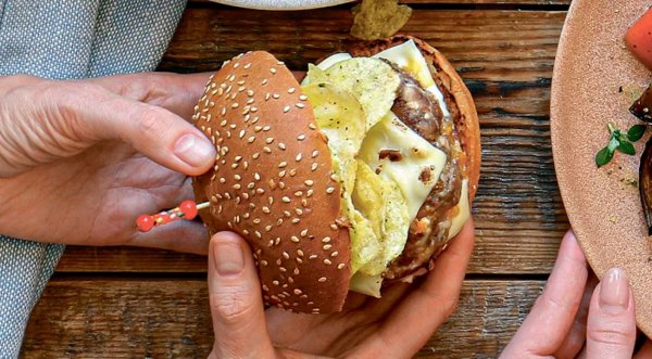 Описание: Оригинальный бургер с чипсами отлично подойдёт для обеда, ужина или сытного перекуса. Его можно приготовить заранее и взять с собой - в дорогу, на работу или учёбу. Отдельно отметим котлету из говяжьего фарша, в которую добавили тёртый сыр для сочности и более яркого вкуса. Она отлично смотрится в бургере и очень хороша на вкус. Чипсы выбирайте на свой вкус. А булочки лучше взять из цельнозерновой муки: они более питательные и полезные в сравнении с пшеничными.📌 НУЖНО (на 1 порцию):🔹 40 г тёртого чеддера🔹 120 г говяжьего фарша🔹 1 ст. л. растительного масла🔹 1 булочка для бургера🔹 2 ломтика плавленого сыра🔹 чипсы📌 ГОТОВКА:🔷 Смешайте тёртый сыр чеддер с говяжьим фаршем, посолите, поперчите. Сформируйте круглую котлету и обжарьте на растительном масле до золотистого цвета, по 3 мин. с каждой стороны.🔷 Переложите котлету на тарелку, на той же сковороде обжарьте разрезанную вдоль булочку, 1 мин.🔷 Положите на нижнюю половину булочки ломтик плавленого сыра, затем котлету и снова ломтик сыра. Посыпьте бургер чипсами и накройте верхней частью булочки. Подавайте горячим.🔥 НА ЗАМЕТКУ. Котлеты для бургера с чипсами можно приготовить из любого фарша. Хотите более диетический вариант - возьмите фарш из индейки или куриный. Более сытный вариант получится из свиного фарша или микса свинины и говядины.