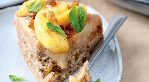 Описание: Подавать к нему можно обычный, крепко заваренный чёрный чай. Яблоки для пирога лучше выбирать не слишком сладкие, кислинку нейтрализует коричневый сахар, заодно добавит карамельных нот. Cезонные, ранние сорта, впрочем, тоже подойдут. Благодаря растительному молоку блюдо постное, особенно удачно с пряностями подружится кокосовое. Это не самое диетическое молоко, но в нём много полезных, полиненасыщенных жирных кислот и витаминов — A, B, C и PP. 📌 НУЖНО (на 8 порций):🔹 200 мл кокосового, миндального или соевого молока🔹 150 г муки🔹 60 г изюма🔹 4 ст. л. измельченного миндаля🔹 3 ст. л. мёда🔹 2 ч. л. молотого имбиря🔹 1 ч. л. молотого кардамона🔹 1 ч. л. молотой корицы🔹 1 ч. л. молотой гвоздики🔹 1 ч. л. соды🔹 0,5 ч. л. соли🔹 растительное масло - для смазывания формы🔹 свежая мята - для подачи🔻🔻🔻 Для начинки:🔹 3 небольших яблока🔹 3 ст. л. коричневого сахара🔹 2 ст. л. оливкового масла🔹 1 ч. л. молотой корицы🔹 1 ч. л. ванильного сахара📌 ГОТОВКА:🔷 Яблоки вымойте и разрежьте на половинки. Удалите сердцевины с семенами. Мякоть нарежьте ломтиками.🔷 Разогрейте сковороду с оливковым маслом. Выложите яблоки, посыпьте коричневым сахаром, корицей и ванильным сахаром. Карамелизуйте, помешивая, в течение 10 мин. на среднем огне. Отложите несколько долек для украшения, остудите. Оставшиеся дольки уложите ровным слоем в смазанную растительным маслом форму для выпечки.🔷 Приготовьте тесто. Муку просейте, соедините с содой, солью и пряностями. Добавьте миндаль и изюм, перемешайте.🔷 Разогрейте духовку до 180 °C. Молоко нагрейте с мёдом до однородной консистенции. Перелейте к мучной смеси и тщательно перемешайте. Получившимся тестом залейте яблоки, поставьте форму в духовку и выпекайте 45-50 мин.🔷 Остудите пирог, выньте из формы, украсьте отложенными яблоками и мятой.🔥 КСТАТИ. Кокосовое молоко можно приготовит и дома: для этого кокосовую стружку сначала запаривают в кипятке, затем пробивают блендером, после чего массу отжимают с помощью марли. Получившуюся жидкость можно добавлять в горячие напитки и использовать в выпечке.
