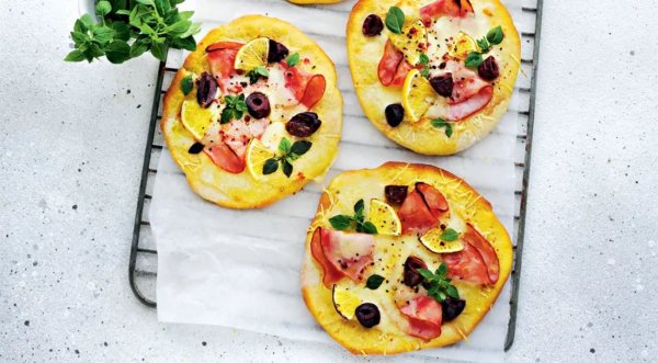 Описание: Пиццетты с лимоном – это пиццы в миниатюре. По всем параметрам они хороши: не надо резать на порции, искать большое блюдо под выкладку. Такие миньоны удобно брать с собой в качестве сытного перекуса и замораживать полуфабрикатами. В любой подходящий момент достали из морозилки, кинули в духовку, и через 6-8 минут свежайшая домашняя выпечка уже на столе. Обязательно привлекайте к приготовлению детей. Малыши любят возиться с тестом, поэтому с удовольствием помогут организовать «художественный беспорядок» с продуктами, раскладывая на маленьких лепёшках ломтики цитруса, моцареллы, ветчины, оливок. Можно устроить семейный конкурс: кто больше всех старался, тому достанется самая красивая Pizzetta и звание лучшего пиццайоло.📌 НУЖНО (на 8 порций):🔹 200 г моцареллы🔹 150 г ветчины🔹 100 г тёртого пармезана🔹 100 г оливок🔹 1 лимон🔹 2 ст. л. оливкового масла🔹 крупномолотый чёрный перец🔹 3-4 веточки свежего базилика - для подачи🔻🔻🔻 Для теста🔹 500 г муки🔹 7 г сухих дрожжей🔹 2 ст. л. оливкового масла🔹 0,5 ч. л. соли📌 ГОТОВКА:🔷 В миску всыпьте муку, соль и дрожжи, влейте 300 мл тёплой воды и оливковое масло, замесите тесто. Переложите на рабочую поверхность и месите, пока тесто не станет эластичным и гладким. Скатайте в шар, верните в миску, накройте пищевой плёнкой и оставьте на 1 ч. Тесто должно увеличиться в объёме примерно в два раза.🔷 Нарежьте лимон тонкими кружками, вскипятите воду в небольшой кастрюле и положите лимоны в кипяток на 1 мин. Отбросьте их на дуршлаг, каждый кружок разрежьте на четвертинки.🔷 Моцареллу и ветчину нарежьте тонкими ломтиками. Оливки нарежьте колечками.🔷 Выньте тесто, ещё раз вымесите и разрежьте на 8 частей. Присыпьте рабочую поверхность мукой и каждую часть раскатайте в тонкие пласты. Разложите на них по 2-4 кусочка лимона, оливки, ветчину и моцареллу, посыпьте пармезаном, приправьте перцем и сбрызните оливковым маслом. Выложите на горячий противень и выпекайте в разогретой до 200 °С духовке 6-8 мин.🔷 Готовые пиццетты переложите на ровную поверхность, украсьте листочками базилика и подавайте.