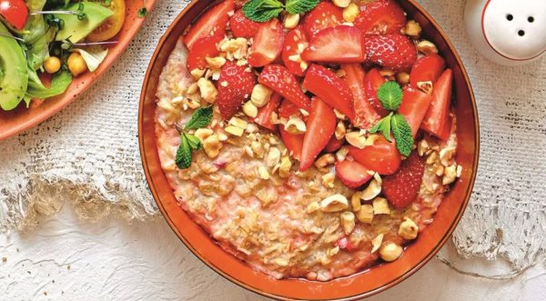 Описание: Овсяная каша с ягодами и орехами - лучшее начало дня по мнению диетологов. Вообще, она считается одним из самых полезных блюд для завтрака. Овсянка содержит много пищевых волокон, которые очищают кишечник. Конечно, это относится к каше из цельного зерна в первую очередь. Жаль, что любят хлопья далеко не все. А полюбить нужно. Попробуйте приготовить кашу на растительном молоке и положить ягоды и орехи. Они не только добавят блюду пользу, но и заметно изменят его вкус. 📌 НУЖНО (на 2 порции):🔹 100 г овсяных хлопьев🔹 300 мл растительного молока🔹 50 г фундука🔹 100 г замороженной или свежей клубники🔹 соль – по вкусу🔹 сахар или мёд – по вкусу📌 ГОТОВКА:🔷 Всыпьте в кастрюлю овсяные хлопья, влейте растительное молоко, добавьте щепотку соли и доведите до кипения. Уменьшите нагрев до минимального и готовьте кашу, постоянно перемешивая, 3-4 мин. По желанию добавьте сахар или мёд.🔷 На сухой сковороде обжарьте фундук до золотистого цвета, 3-4 мин. Снимите с огня и мелко порубите.🔷 Клубнику нарежьте ломтиками (замороженные ягоды предварительно разморозьте).🔷 Разложите кашу в небольшие миски, посыпьте орехами и ягодами, по желанию дополнительно полейте мёдом.🔥 СОВЕТ. Если нет времени варить овсянку, насыпьте в миску постную гранолу или те же хлопья, залейте растительным молоком, добавьте орехи и ягоды, накройте крышкой и уберите на ночь в холодильник. На утро вас будет ждать вкусная и полезная каша!