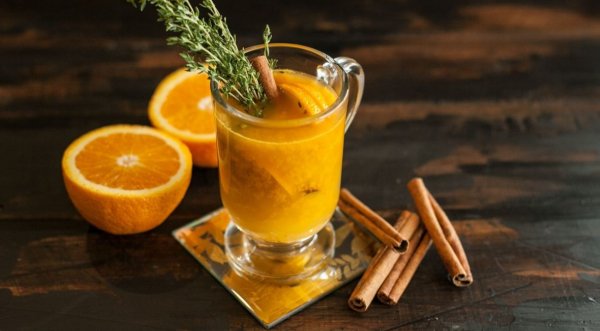 Описание: Напиток. Калории: 126.32 ккал/порция📌 НУЖНО (на 2 порции):🔹 200 мл кипятка🔹 100 мл мандаринового сока🔹 2 мандарина🔹 половина лимона🔹 40 г мёда🔹 1 веточка розмарина🔹 2 палочки корицы📌 ГОТОВКА:🔷 1 мандарин очистите от кожуры, положите в небольшой ковшик и раздавите толкушкой. 🔷 Мелкой тёркой снимите цедру с лимона, выжмите сок и добавьте к мандарину. 🔷 Влейте мандариновый сок и кипяток, добавьте половину веточки розмарина и палочку корицы. 🔷 Доведите на сильном огне почти до кипения и снимите с огня.🔷 Процедите напиток через ситечко в два бокала. 🔷 Тщательно вымойте оставшийся мандарин и нарежьте кружками вместе с кожурой. 🔷 Украсьте бокалы мандарином, розмарином и палочками корицы, сразу подавайте.