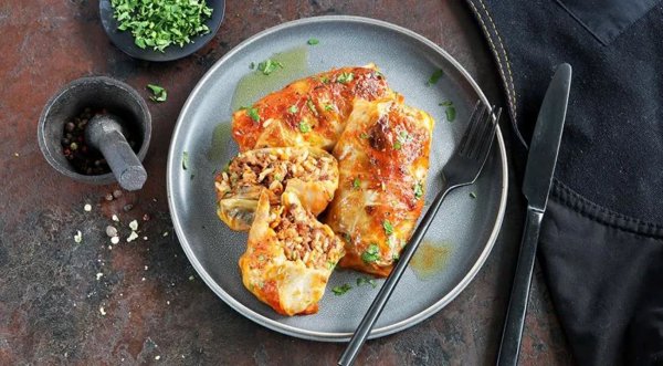 Описание: ✅ Голубцы📌 НУЖНО (на 4 порции):🔹 1 кочан капусты🔹 400 г говяжьего фарша🔹 1 морковь🔹 1 луковица🔹 100 г риса🔹 4 ст. л. растительного масла🔹 2 ст. л. томатной пасты🔹 2 веточки петрушки🔹 соль, молотый чёрный перец📌 ГОТОВКА:🔷 В небольшую кастрюлю всыпьте рис, влейте 250 мл. горячей воды, посолите и доведите на сильном огне до кипения. Уменьшите нагрев до минимального и готовьте под крышкой 12 мин. Снимите крышку и остудите рис.🔷 Узким ножом вырежьте кочерыжку из кочана капусты. Аккуратно, стараясь не повредить, снимите 8–10 верхних листьев. В большой кастрюле вскипятите 3 л. воды, посолите. Кладите по 2 листа капусты в кипящую воду и варите каждую партию по 4 мин. Отваренные листья вынимайте шумовкой и перекладывайте в другую кастрюлю с холодной водой. Продолжайте, пока не подготовите все листья.🔷 Мелко нарежьте лук, морковь нашинкуйте соломкой. В глубокой сковородке разогрейте 2 ст. л. растительного масла и потушите лук до прозрачности, 4 мин. Добавьте морковь и готовьте ещё 3 мин. Соедините овощи с фаршем и рисом, посолите, приправьте перцем и перемешайте.🔷 Обсушите капусту бумажными полотенцами и положите на доску. Отбейте стебли и утолщения листьев кухонным молотком. На каждый лист разложите по 2 ст. л. фарша и сверните конверты.🔷 В глубокой сковороде разогрейте оставшееся растительное масло и обжарьте голубцы со всех сторон до золотистого цвета, 5–7 мин. Размешайте томатную пасту в 250 мл. теплой воды, приправьте перцем, посолите и влейте в сковороду. Готовьте под крышкой на медленном огне в течение 30 мин. Несколько раз переверните голубцы лопаткой. Перед подачей посыпьте мелко нарезанной петрушкой.🔥 НА ЗАМЕТКУ. Если на варку капустных листьев нет времени, можно просто положить их в морозилку – после разморозки они станут мягкими и податливыми.