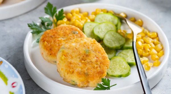 Описание: ✅ Рыбные котлетки с сыром и овощами📌 НУЖНО (на 4 порции):🔹 500 г филе белой рыбы🔹 1 яйцо🔹 90 г твёрдого сыра🔹 50 г замороженного зелёного горошка🔹 50 г замороженной или консервированной кукурузы🔹 1 морковь🔹 4 ст. л. растительного масла🔹 2 ст. л. муки🔹 соль🔻🔻🔻 Для подачи:🔹 консервированная кукуруза🔹 огурцы📌 ГОТОВКА:🔷 Натрите морковь на тёрке, сложите в небольшой сотейник, влейте 4 ст. л. воды и потушите до мягкости, 7 мин.🔷 Нарежьте рыбу небольшими кусочками, соедините с морковью и измельчите погружным блендером до однородности. Добавьте яйцо, горошек, кукурузу, тёртый сыр и муку, посолите и тщательно перемешайте. Мокрыми руками сформируйте небольшие круглые котлетки и разложите в один слой на тарелке. Накройте пищевой плёнкой, уберите в холодильник на 20 мин.🔷 В сковороде разогрейте растительное масло. Выложите котлеты и жарьте на среднем огне до золотистого цвета, 6 мин. Переверните на другую сторону и готовьте ещё 5 мин. Подавайте котлетки с кукурузой и нарезанными кружками огурчиками.🔥 НА ЗАМЕТКУ. Гарнировать (дополнять) рыбные котлеты можно и свежими овощами (подойдут помидоры, огурцы, сладкий перец) и зеленью, а для подачи приготовить соусы на основе йогурта или сметаны.🔥 КСТАТИ. Белую рыбу можно заменить на филе более нежной красной. Особенно вкусно выйдет котлета из рыбы лососевых пород. Процесс приготовления будет таким же, как описывает рецепт.