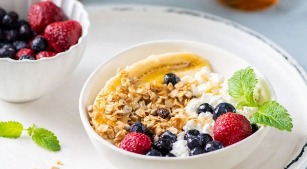Описание: ✅ Банана-сплит с творогом и ягодами📌 НУЖНО (на 1 порцию):🔹 50 г мягкого творога🔹 1 банан🔹 2 ст. л. замороженных ягод🔹 1 ст. л. мюсли🔹 1 ч. л. мёда🔹 мята📌 ГОТОВКА:🔷 Чтобы приготовить банана-сплит с творогом и ягодами, заранее выньте из холодильника замороженные ягоды, чтобы они немного оттаяли. Банан разрежьте вдоль пополам и положите в миску.🔷 Выложите творог, добавьте ягоды и мюсли и полейте мёдом. Украсьте листочком мяты и подавайте на завтрак.🔥 НА ЗАМЕТКУ. Творог с бананом и мюсли можно дополнить любимыми свежими, а не только замороженными, ягодами на свой вкус, дополнительно посыпать крошкой из тёмного шоколада.🔥 КСТАТИ. Если вы хотите приготовить ПП банана-сплит, уменьшить количество калорий в блюде и сделать его более полезным, отдайте предпочтение обезжиренному творогу.