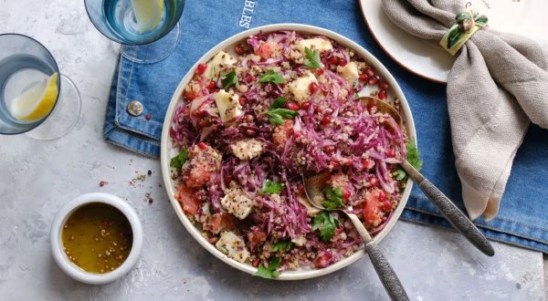 Описание: 🥣 Салат с грейпфрутом и киноа👉 Приготовление питательного блюда займёт у вас не более 30 минут. Пока экзотическая крупа после предварительного замачивания варится, разделайте грейпфрут и гранат, нашинкуйте капусту. Заправка на основе оливкового масла, гранатового сока, горчицы с мёдом и пряностей – незаметный, но едва ли не главный элемент блюда. Именно она подарит ему пряный оттенок, богатый вкус и сделает салат восхитительным во всех отношениях. Подавайте салат в тёплом виде.✅ НУЖНО:🔹 130 г киноа🔹 100 г краснокочанной капусты🔹 половина грейпфрута🔹 половина граната🔹 2-3 веточки петрушки🔹 50 г сыра с голубой плесенью🔻🔻🔻 Для заправки:🔹 4 ст. л. оливкового масла🔹 1 ст. л. гранатового сока🔹 1 ч. л. мёда🔹 1 ч. л. горчицы🔹 1 ч. л. семян кориандра🔹 соль✅ ГОТОВКА:🔷 Чтобы приготовить салат с грейпфрутом и киноа, всыпьте киноа в небольшой ковшик, залейте горячей водой и оставьте на 10 мин. Слейте воду, влейте 200 мл кипятка, посолите и варите на среднем огне под крышкой 10 мин. Перемешайте вилкой и остудите.🔷 Тонко нашинкуйте капусту. Грейпфрут разделите на дольки, удалите плёнки, мякоть нарежьте небольшими кусочками. Извлеките зёрна из граната. Сыр нарежьте небольшими кусочками или наломайте.🔷 Приготовьте заправку. Семена кориандра растолките в ступке или раздавите на доске плоской стороной ножа. Соедините оливковое масло с гранатовым соком, мёдом и горчицей, добавьте кориандр и соль и взбейте вилкой или венчиком.🔷 В большом салатнике соедините киноа с капустой и листьями петрушки и полейте заправкой. Аккуратно перемешайте, добавьте грейпфрут, гранат и сыр и сразу подавайте на стол.🔥 НА ЗАМЕТКУ. Краснокочанная капуста считается более полезной по сравнению с белокочанной. Она содержит больше витамина С и антиоксидантов. Даёт меньше сока и поэтому лучше держит «форму» в салатах, дольше хранится, не теряя полезных свойств. Но если вы предпочитаете обычную белую капусту, то можете сделать замену в салате с киноа.🔥 КСТАТИ. Было бы идеально, если для заправки вы приготовите гранатовый сок сами, из второй половинки граната. Можно также выжать грейпфрут и добавить грейпфрутовый сок в соус. Не лишним в этом салате будет и нейтральный по вкусовым качествам, но полезный авокадо.