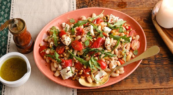 Название: Салат с печёным перцем, фетой и белой фасолью