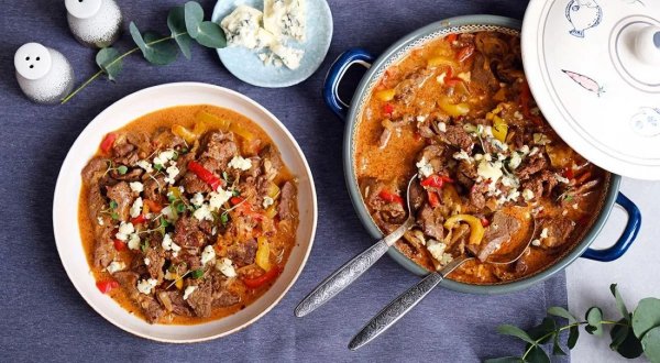 Описание: 🥣 Рагу с говядиной и перцем - в горшочке✅ НУЖНО:🔹 400 г говядины🔹 1 сладкий жёлтый перец🔹 1 сладкий красный перец🔹 1 луковица🔹 3-4 зубчика чеснока🔹 120 г сметаны🔹 1 ст. л. томатной пасты🔹 4 ст. л. растительного масла🔹 150 г сыра с голубой плесенью🔹 соль🔹 молотый чёрный перец🔹 микрозелень для подачи✅ ГОТОВКА:➡️ Разогрейте духовку до 200 °С. Нарежьте мясо тонкими ломтиками, посолите и приправьте перцем. Нарежьте лук полукольцами. Измельчите чеснок. Сладкий перец очистите и нарежьте соломкой.➡️ В глубокой сковороде разогрейте растительное масло. Обжаривайте мясо небольшими порциями до золотистого цвета и перекладывайте в жаропрочный горшочек.➡️ В ту же сковороду добавьте оставшееся масло и потушите лук до прозрачности, 5 мин. Положите в сковороду сладкий перец, добавьте томатную пасту и сметану, посолите, приправьте чёрным перцем и продолжайте готовить на медленном огне 8 мин.➡️ Переложите овощи со сковороды в горшочек с мясом, влейте 160 мл горячей воды и аккуратно перемешайте. Накройте крышкой и поместите на средний уровень духовки. Запекайте мясо с овощами в течение 30 мин. Выньте из духовки и подавайте на стол в горшочке. Уже в тарелках посыпьте блюдо сыром с голубой плесенью и микрозеленью.🔥 НА ЗАМЕТКУ. Вы можете приготовить блюдо не в одном, а в нескольких порционных горшочках. Ингредиенты в разных горшочках могут немного отличаться: добавьте или уберите специи, лук, овощи, сыр – и вы получите разные варианты одного и того же блюда.🔥 КСТАТИ. Когда готовите что-то в горшочках, особенно небольших, заполняйте их не до верха, а примерно на три четверти – так содержимое не убежит.