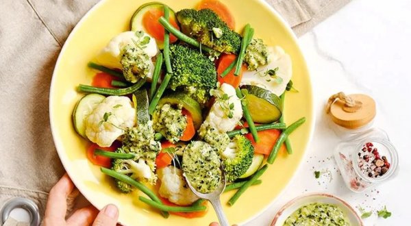 Название: Овощи на пару с зелёной заправкой