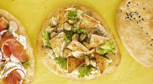 Описание: 🥣 Лепёшка с жареным тофу и грибами✅ Нужно:🔹 4 лепёшки🔹 200 г тофу🔹 100 г хумуса🔹 6-8 мелких шампиньонов🔹 4 листа салата Фризе🔹 4 ст. л. оливкового масла🔹 соль🔹 молотый чёрный перец✅ Готовка:➡️ Чтобы приготовить лепёшку с жареным тофу и грибами, нарежьте тофу треугольными ломтиками толщиной 5-7 мм и обсушите бумажными полотенцами. В большой сковородке разогрейте оливковое масло и обжарьте тофу до золотистого цвета, по 1-2 мин с каждой стороны. Переложите на тарелку.➡️ В ту же сковородку положите нарезанные на 2-4 части шампиньоны, посолите и готовьте на среднем огне 5-6 мин. Несколько раз перемешайте, чтобы грибы равномерно обжарились.➡️ Листья салата порвите небольшими кусочками. Намажьте лепёшки хумусом, распределите грибы и ломтики тофу, добавьте салат и посыпьте небольшим количеством молотого перца.🔥 НА ЗАМЕТКУ. Подавайте лепешку как пиццу, предварительно смазав основу хумусом и выложив все ингредиенты – тофу, грибы и салат фризе – в произвольном порядке.🔥 КСТАТИ. Шампиньон – универсальный гриб для любого блюда, в том числе и для выпечки. Но при желании вы можете заменить его другими видами грибов. Вкусно получится и с культивированными вешенками. Очень ароматно – с лесными грибочками.