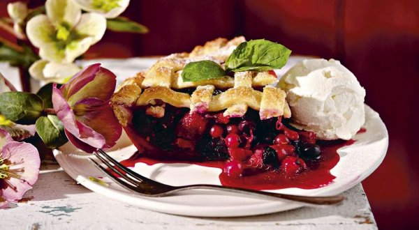 Описание: 🥣 Песочный пирог с ягодами✅ Нужно:👉 Для начинки:🔹 800-900 г свежих ягод (черники, голубики, чёрной смородины, вишни)🔹 150 г сахара, можно коричневого🔹 30 г кукурузного крахмала🔹 1 большое или 2 небольших кислых яблока🔹 половина лимона или лайма🔹 30 г сливочного масла👉 Для теста:🔹 420 г пшеничной муки🔹 210 г холодного сливочного масла🔹 50 г сахара🔹 1 ч. л. соли🔹 160 мл очень холодной воды🔹 20 мл уксуса или водки👉 Дополнительно:🔹 вода, молоко или яйцо для смазывания поверхности🔹 1 ст. л. сахара (по желанию)✅ Готовка🔵 Насыпьте в миску муку, добавьте соль и сахар, перемешайте венчиком.🔵 Нарежьте холодное масло кубиками 1 х 1 см. Положите их в миску с мукой и обваляйте в ней. Кончиками пальцев разломите крупные куски масла на кусочки размером примерно с горошину. Одновременно обваливайте их в муке. Не расплющивайте и не давите масло большими пальцами.🔵 Продолжайте зачерпывать муку и масло, каждый раз проводя большими пальцами по кончикам остальных пальцев один раз и в одном направлении – от мизинца к указательному пальцу. Не забывайте зачерпывать муку со дна и поднимайте руки достаточно высоко. Дайте всему, что есть у вас в ладонях, упасть обратно в миску. Повторите движение 20-25 раз. Частицы покрытого мукой масла будут варьироваться в размере от мелкой крупки до горошин.🔵 Смешайте воду с уксусом или водкой. Добавьте половину жидкости, равномерно разбрызгивая её по поверхности мучной смеси. Сразу же начните замешивать тесто вилкой. Держите её вертикально, начиная смешивать со стенок и постепенно продвигаясь к центру. Следите, чтобы зубцы вилки доставали до дна миски. Тесто начнёт собираться в комки. Если осталось много сухих крошек, добавьте одну-две столовые ложки воды. Возможно, придётся использовать всю воду.🔵 Соберите тесто в комок, разделите его на две части: 2/3 и 1/3. Раскатайте каждую часть между двумя слоями плёнки или бумаги для выпечки до толщины 2,5-3 мм. Положите на доску, не снимая плёнку/бумагу, и уберите в холодильник минимум на 30 мин (максимум на сутки).🔵 Достаньте меньшую часть теста, нарежьте её на полоски шириной 1-1,5 см и сплетите из них решётку. Или вырежьте из теста фигурное печенье. Положите на плёнку, накройте вторым листом плёнки и уберите в морозильник.🔵 Достаньте большую часть теста и выложите её в форму. Уберите в холодильник на 15-20 мин.🔵 Разогрейте духовку до 205°С. Установите противень в нижнюю треть духовки.🔵 Натрите яблоко на крупной тёрке, положите в дуршлаг, установленный над миской.🔵 Смешайте сахар с крахмалом, добавьте ягоды и лимонный сок. Яблоки тщательно отожмите от сока, добавьте к ягодам и перемешайте.🔵 Выложите начинку в форму, разровняйте и разложите на поверхность тонкие ломтики холодного масла.🔵 Накройте начинку решёткой или вырезанным тестом. Срежьте тесто, выступающее над бортами, и соедините решётку с нижним слоем теста.🔵 Смажьте поверхность пирога водой, посыпьте сахаром и поставьте на противень.