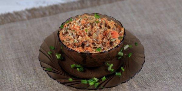 Описание: 🥣 Простой салат с куриной печенью и морковью✅ Нужно:🔹 Яйца – 4 штуки🔹 Куриная печень – 300-350 г🔹 Растительное масло – 3-4 ст. ложки🔹 Морковь – 2 штуки🔹 Лук – 1 штука🔹 Зелень – по вкусу🔹 Соль – по вкусу🔹 Перец чёрный молотый – по вкусу🔹 Майонез – по вкусу✅ Готовка🔵 Яйца отварите вкрутую за 10 минут. Остудите и натрите на крупной тёрке.🔵 Печень нарежьте средними кусочками и примерно за 6-8 минут обжарьте в сковороде с одной-двумя ложками масла. За это время несколько раз переверните.🔥 Можно использовать также свиную или говяжью печень.🔵 Выложите печень на бумажные полотенца, чтобы удалить излишки масла. Остудите.🔵 Морковь натрите на крупной тёрке. Лук измельчите.🔵 В сковороде разогрейте масло. За 4-5 минут обжарьте лук, добавьте морковь и готовьте ещё столько же. Постоянно помешивайте. Снимите с огня и остудите.🔵 Сложите в миску обжаренные овощи вместе с печенью, яйцами, овощами и рубленой зеленью. Посолите, поперчите и заправьте майонезом.🔥 Перед смешиванием убедитесь, что все продукты остыли до комнатной температуры.