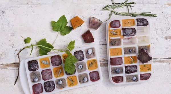 Описание: 🥣 Замороженное ягодное пюре✅ Нужно:👉 Для смородины с базиликом:🔹 чёрная смородина – 400 г🔹 базилик – 2 веточки🔹 сахар – 2 ст. л.👉 Для черноплодки с абрикосами:🔹 черноплодная рябина – 200 г🔹 спелые абрикосы – 10 шт.🔹 сахар – 2 ст. л.👉 Для дыни с голубикой:🔹 мякоть дыни – 400 г🔹 голубика – 200 г🔹 мёд – 1-2 ст. л.🔹 мята – 2 веточки👉 Для облепихи с розмарином:🔹 облепиха – 400 г🔹 лимон – 0,5 шт.🔹 сахар – 2 ст. л.🔹 розмарин – 1 маленькая веточка✅ Готовка🔵 Приготовьте смесь из смородины и базилика. Снимите ягоды с веточек, вымойте и обсушите на полотенце. Сложите в стакан блендера и измельчите до однородности. Мелко нарежьте листья базилика. Соедините ягодное пюре с сахаром и перемешивайте до полного растворения сахара. Добавьте базилик. Разложите смесь в форму для льда и уберите в морозильную камеру.🔵 Приготовьте смесь из черноплодной рябины и абрикосов. Опустите абрикосы на 20-30 сек в кипяток, облейте холодной водой и аккуратно снимите кожицу. Разрежьте абрикосы пополам и удалите косточки. Соедините с ягодами рябины, добавьте сахар и измельчите блендером. Разложите в формочки и заморозьте.🔵 Приготовьте смесь из дыни и голубики. Мякоть дыни нарежьте крупными кубиками, соедините с половиной голубики и измельчите блендером. Отделите от стеблей и мелко нарежьте листья мяты. Перемешайте дынное пюре с оставшимися ягодами, мятой и мёдом и заморозьте в формочках для льда.🔵 Приготовьте смесь из облепихи. Отделите от веточки и мелко нарежьте листочки розмарина. Переберите и вымойте облепиху, обсушите на полотенце и измельчите блендером в режиме «пульс». Добавьте лимонный сок, сахар, розмарин и размешайте. Разлейте в формочки для льда и заморозьте. После заморозки переложите в герметичные контейнеры или в зиплок-пакеты и храните 9 месяцев.🔥 НА ЗАМЕТКУ. Ягодный лёд очень хорошо подойдёт для напитков. Его можно добавлять в любимые коктейли, использовать замороженные кубики для чая и добавлять в домашнее мороженое. 🔥 КСТАТИ. Если у вас нет в достаточном количестве формочек для льда, можно использовать под ягодное пюре для заморозки маленькие пластиковые стаканчики, пластиковые вкладыши из конфетной коробки или пластиковые порционные пакеты. Плюс такой тары - её не жалко испортить и не надо потом отмывать, а просто выбросить. Такой способ заготовки, как замороженное ягодное пюре на зиму, прекрасная альтернатива варенью или джему. Времени на готовку уйдёт у вас гораздо меньше да и сахара тоже. И калорийность замороженного пюре невелика в сравнении с другими сладкими заготовками.
